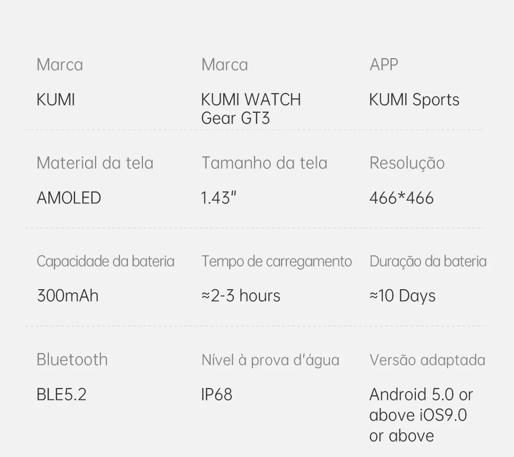 Junte-se ao KUMI Family Experience um smartwatch que vai além do básico. Com o KUMI WATCH Gear GT3, eleve a sua rotina diária e adote um estilo de vida mais inteligente e saudável.
