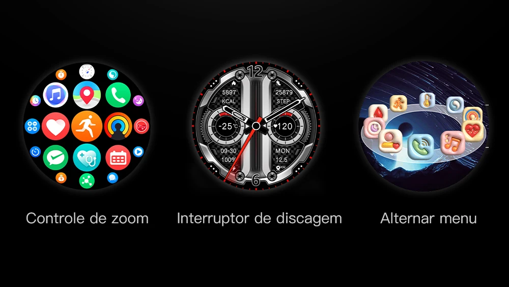 ? Chamadas via Bluetooth + Ferramentas Inteligentes – Gravação de voz, jogos, SOS, calculadora, cronômetro, despertador, clima, calendário e mais.