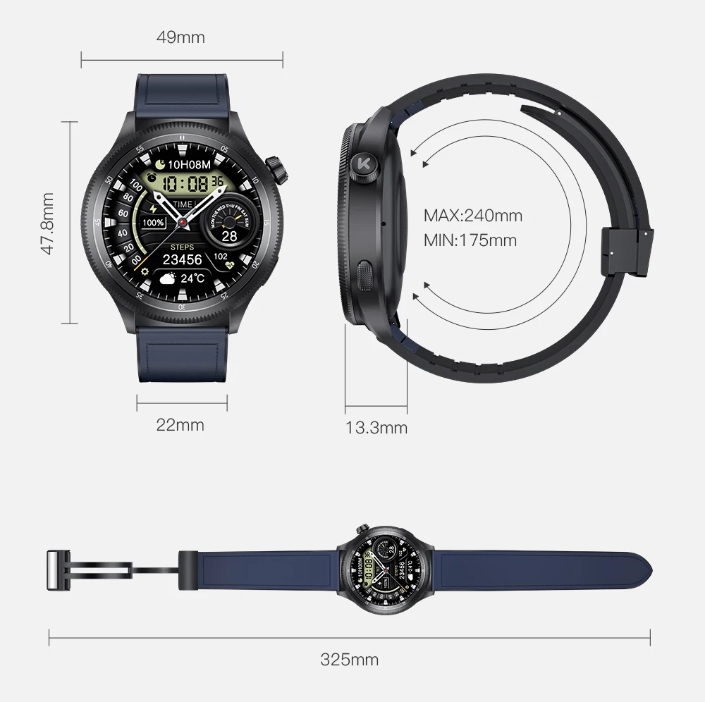 Recursos inteligentes cotidianos: notificações inteligentes (chamadas recebidas, mensagens de texto, notificações do Gmail e do aplicativo do smartphone), clima (verifique o clima para os próximos sete dias), controle a música e a câmera do smartphone, encontre meu telefone, encontre meu relógio, não perturbe o modo, lembrete do telefone celular.